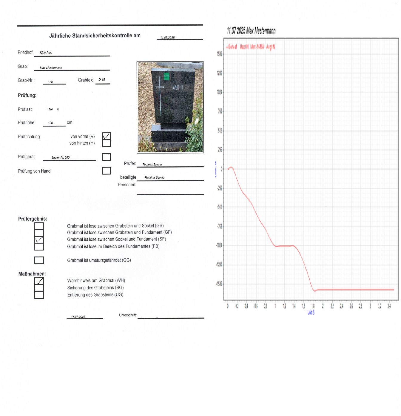 Durch die regelmäßige Prüfung der Standsicherheit wird gewährleistet, dass auf den Friedhöfen keine Gefährdung von Personen durch lose Grabsteine ausgehen und somit Unfälle können dadurch verhindert werden.